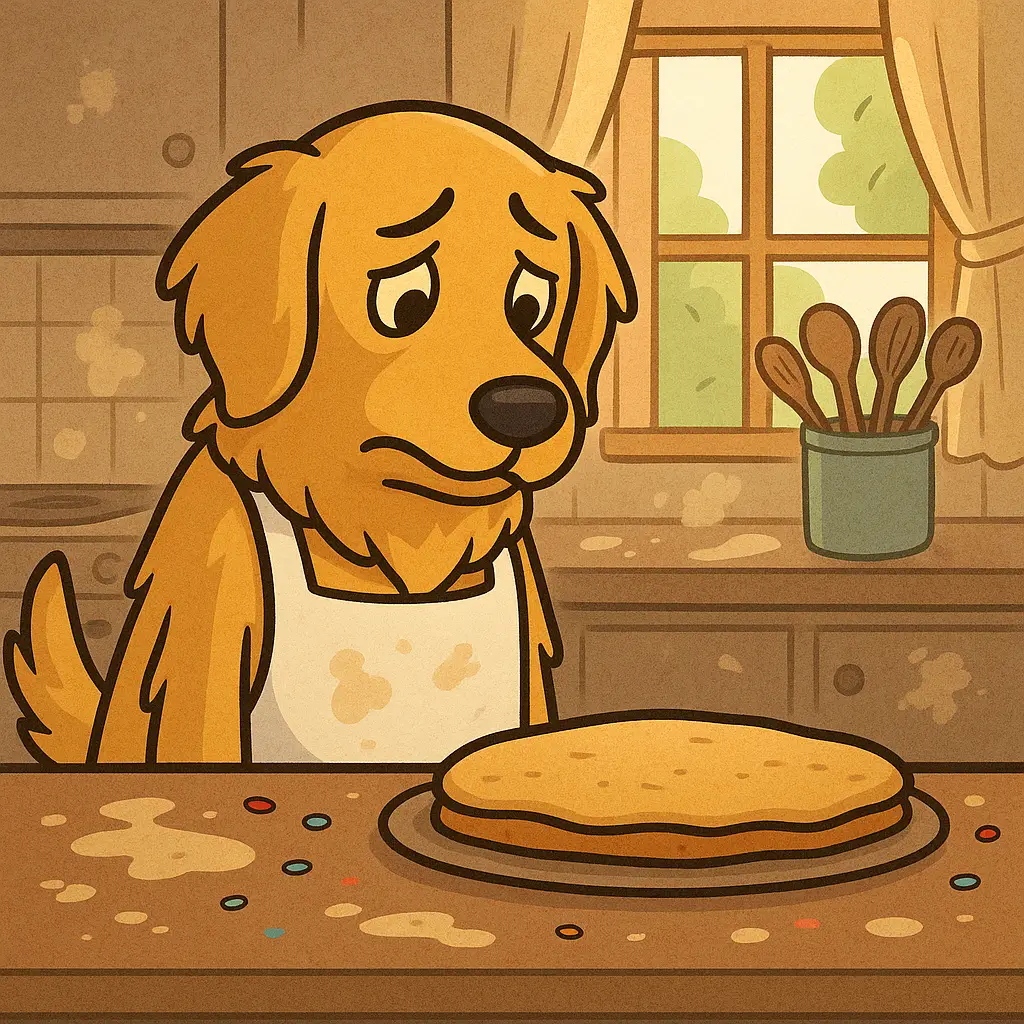 In a cozy little kitchen on Maple Lane, lived Benny the Dog, a golden retriever with an apron, a whisk, and a dream.
