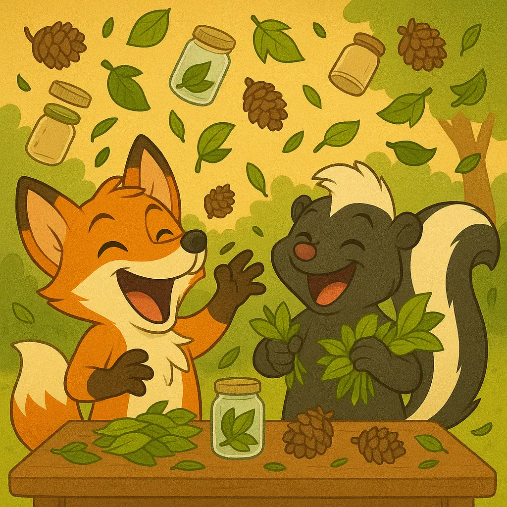 Felix sniffed the air. “Hey, this actually smells nice, a mix of pine, mint, and… friendship?” Sally smiled. “See? Sometimes, two smells make one perfect perfume!”