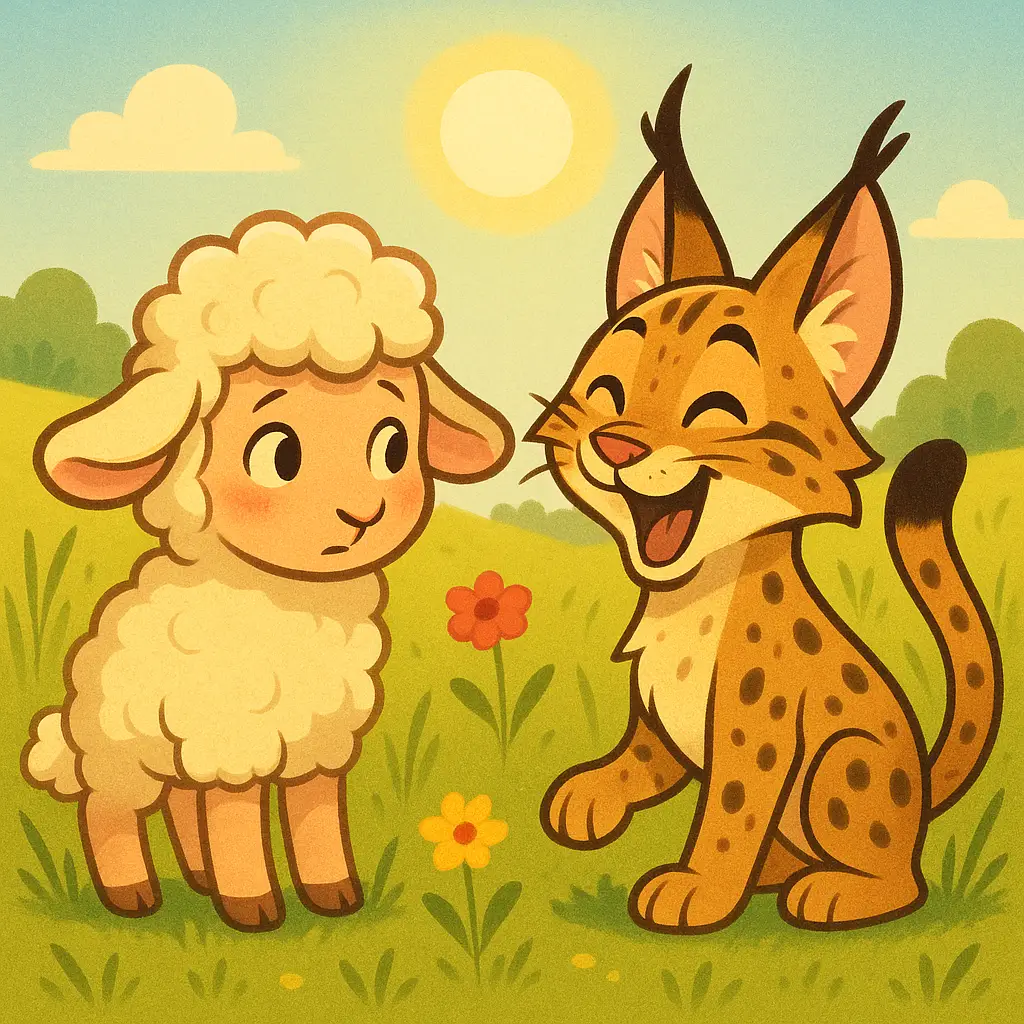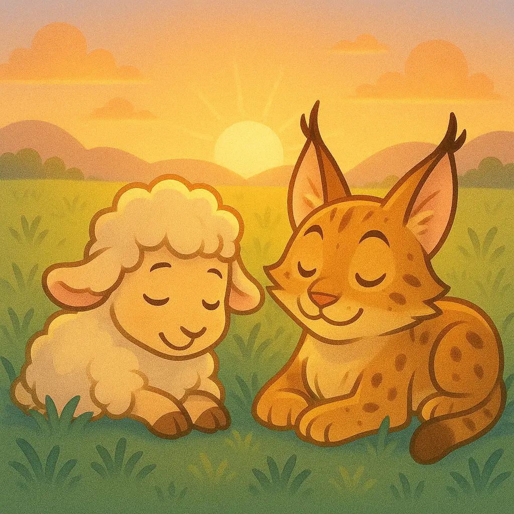 Lamb frowned but smiled shyly. “Well… I eat grass and panic.” Lynx chuckled. “Perfect! You’ll balance me out.”