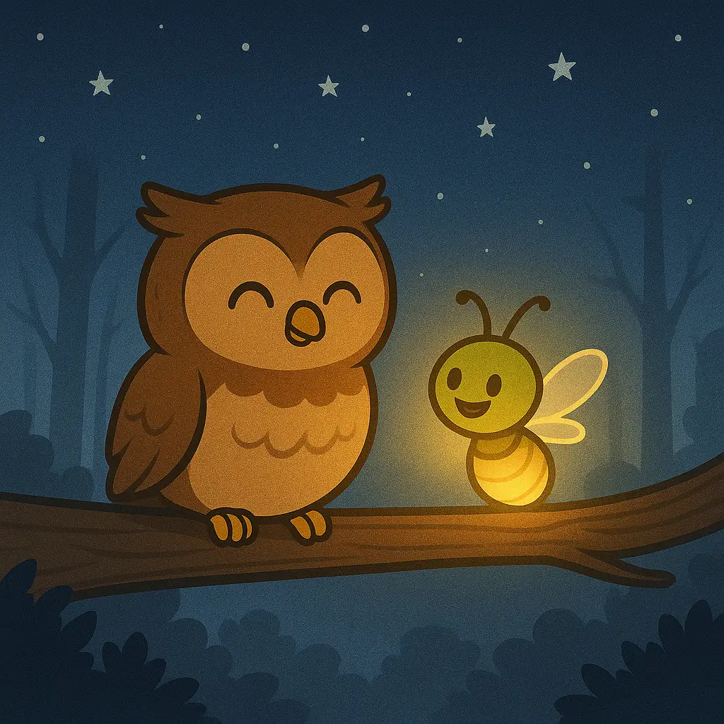 Every evening, you could see their glow high above the trees: one hoot, one sparkle, and a friendship that truly lit up the night.
