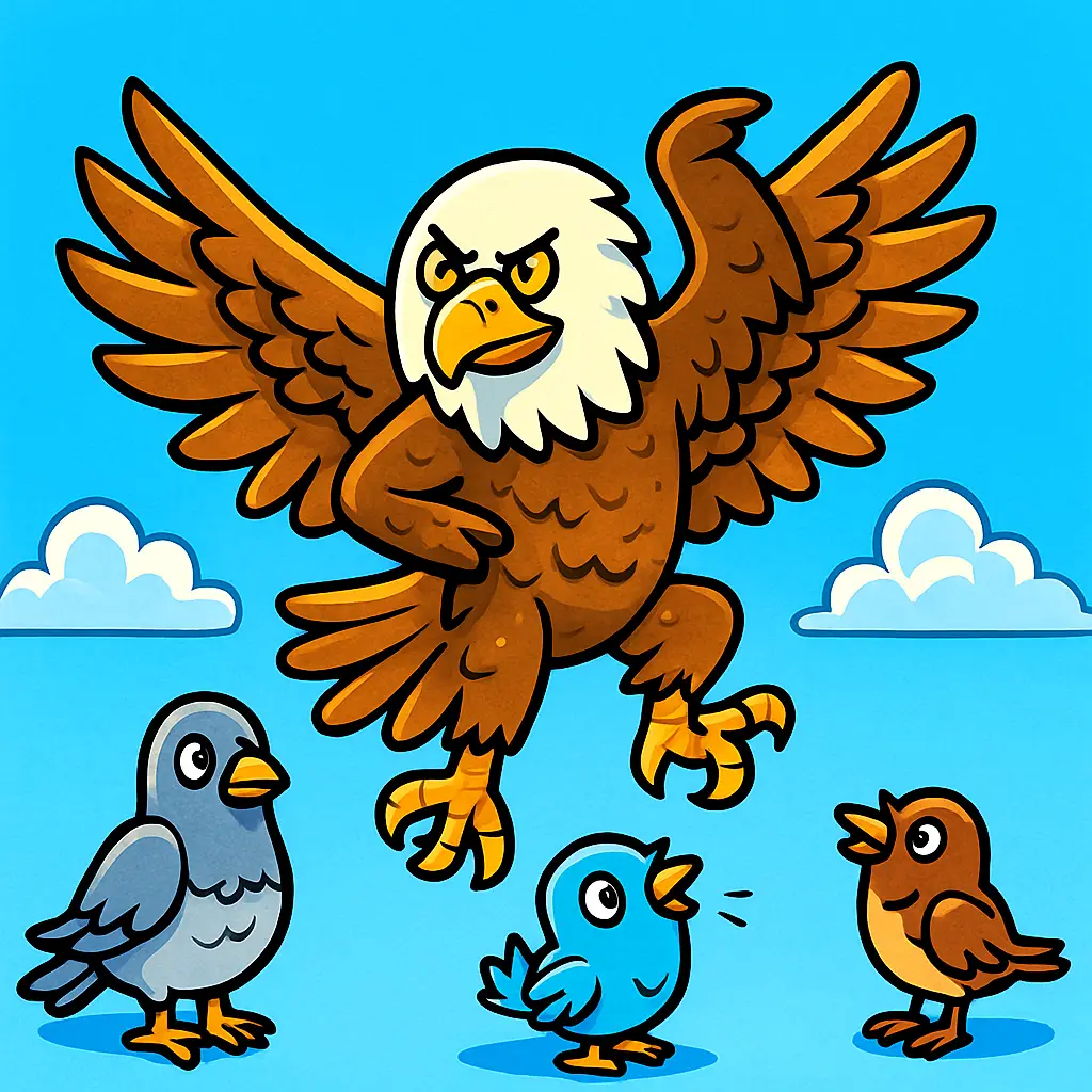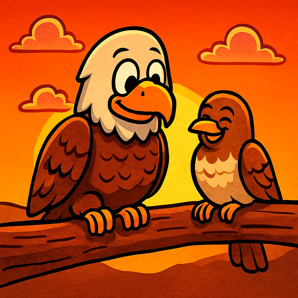 The smaller birds rolled their eyes. “Here comes Eddie again,” groaned Sparky the sparrow.