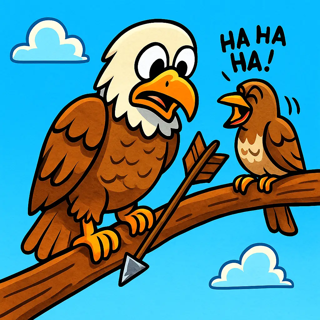 “My own feathers? Helping an arrow hit me? Oh, the betrayal!” he gasped dramatically.