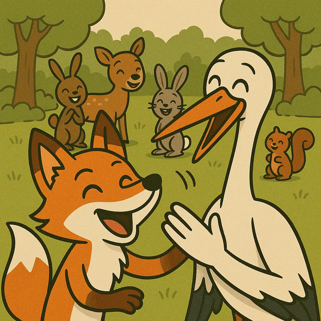 In a sunny forest, there lived a sly fox named Freddy, who loved two things: eating and playing pranks.