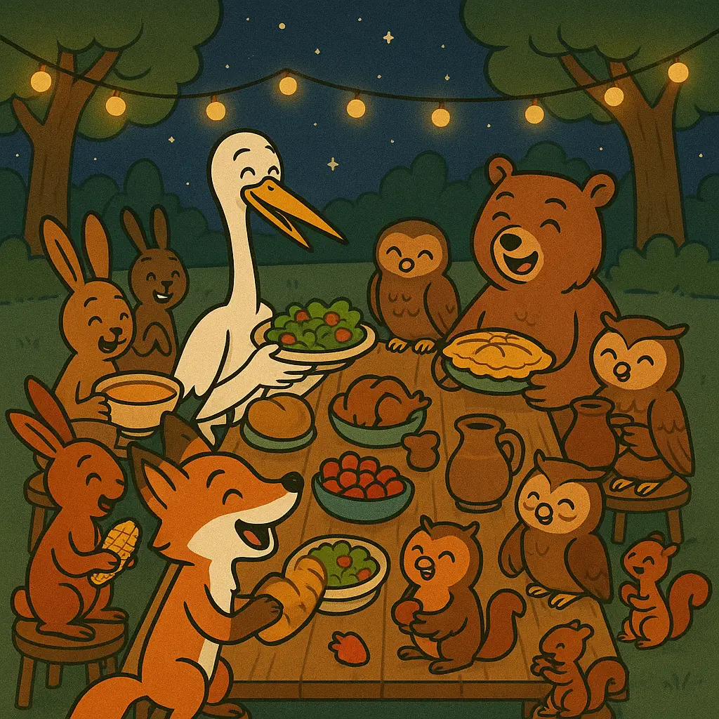 From that day, Freddy never played mean pranks again. Instead, he became the forest’s best dinner host.