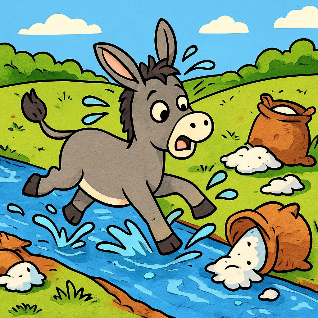 And every time he passed the stream, he winked and said, “No more tricks, water and I are officially even!”