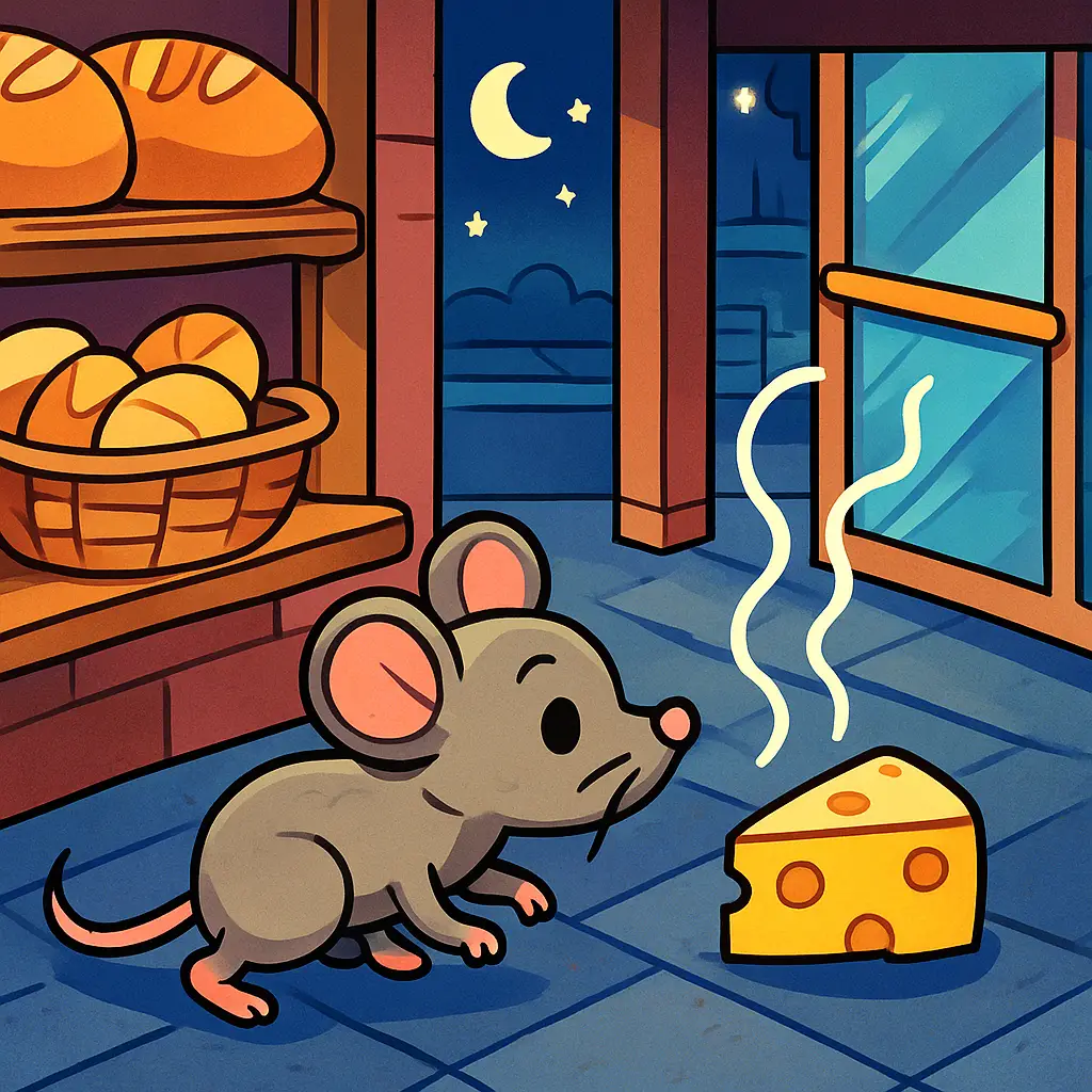Milo the Mouse was not like other mice. While his friends slept peacefully in their cozy hole under the bakery, Milo loved exploring, especially when the world was quiet and full of crumbs.