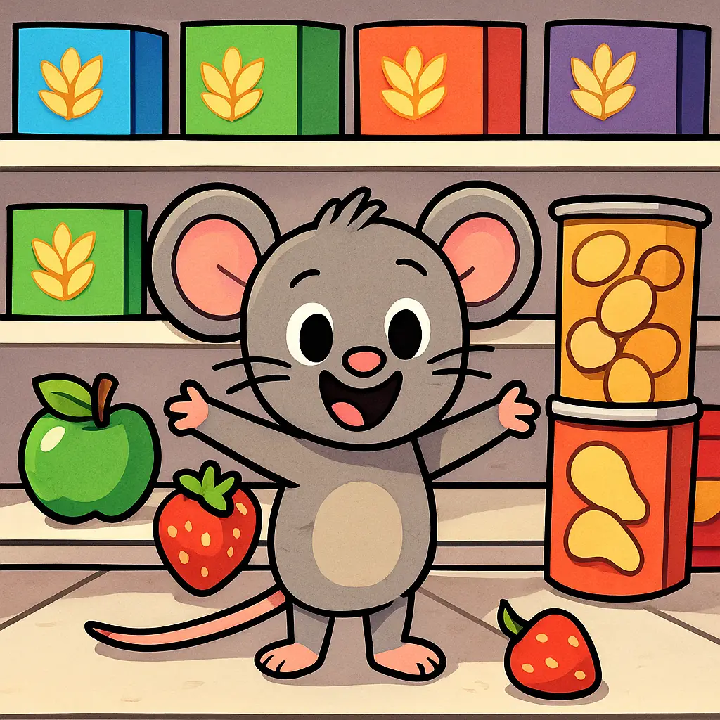 When the bag finally opened, Milo peeked out and gasped. He was surrounded by rows of colorful boxes, towers of fruit, and endless shelves of snacks!