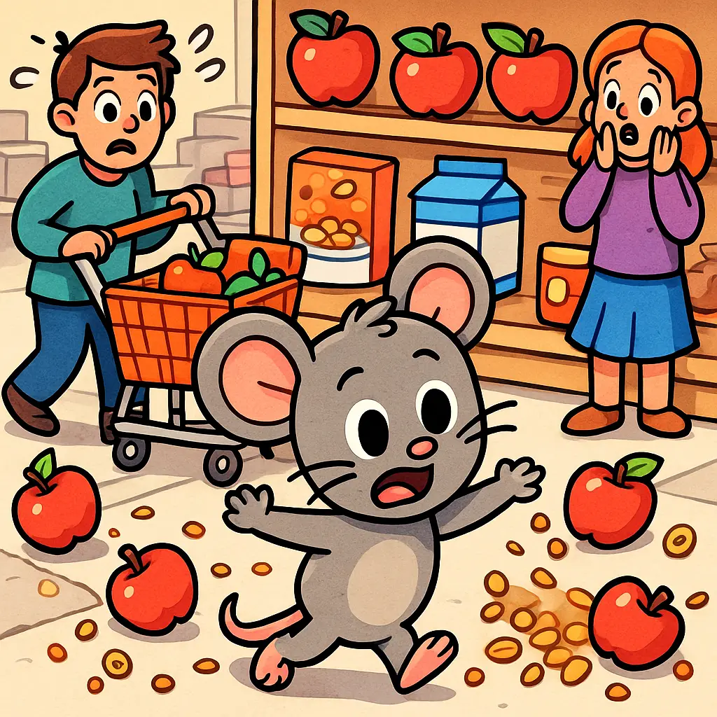The whole store went wild; shoppers gasping, the manager waving a broom, and Milo zigzagging between rolling apples.