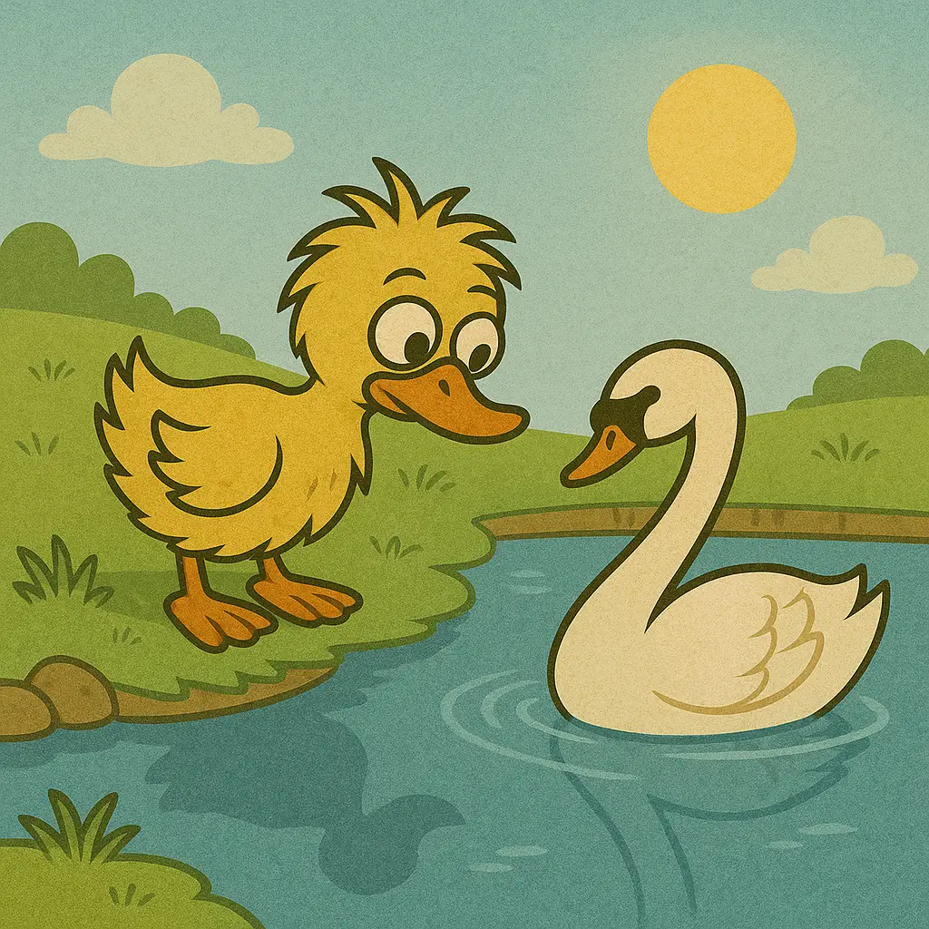 Ducky-Doo laughed, his feathers glimmering in the sunlight. “Maybe I’m not a duck at all. Maybe I’m a Funny Swan!”