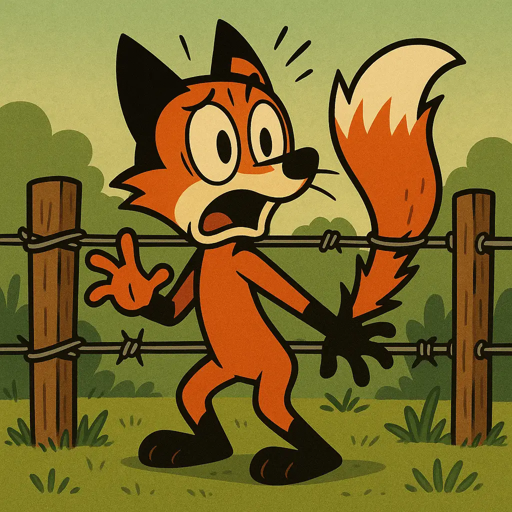 One day, while trying to sneak through a farmer’s fence to grab a juicy chicken, snap! — his tail got caught in a trap!