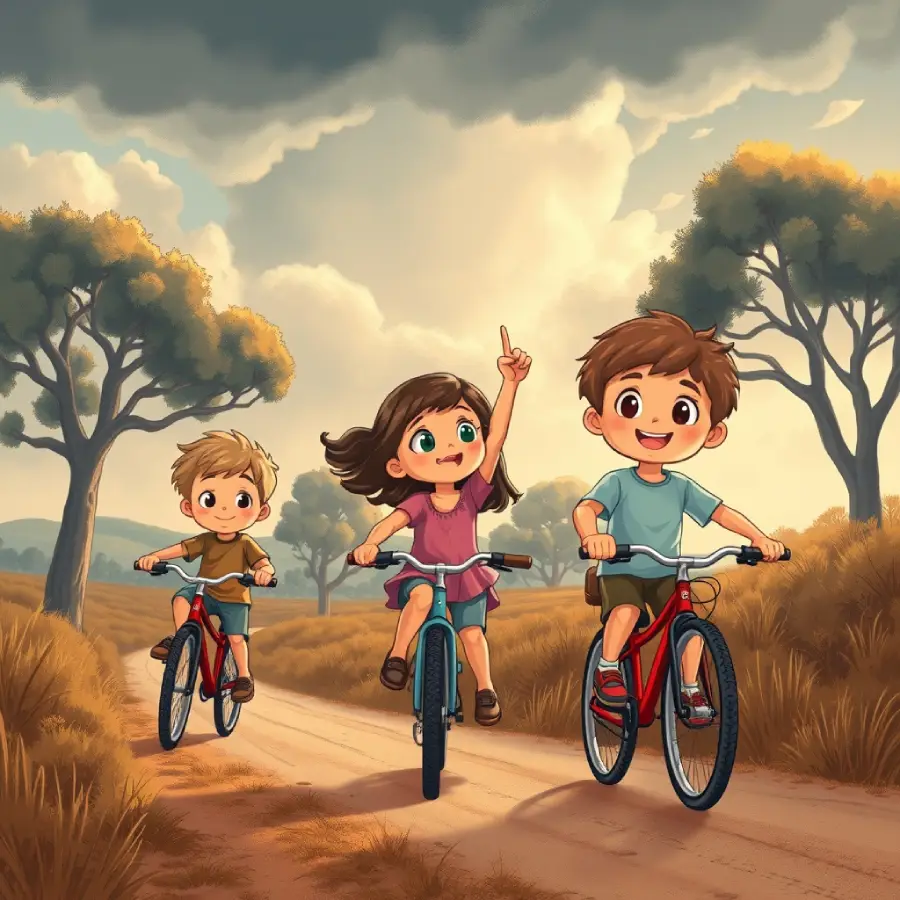 In the heart of Australia, just outside a small town called Gumtree Creek, three best friends, Liam, Zoe, and Noah, were riding their bikes along a dusty trail. The sun was shining, kookaburras were laughing in the trees, and everything felt perfect.