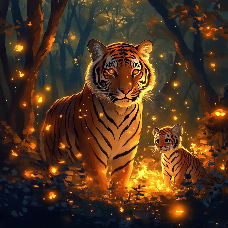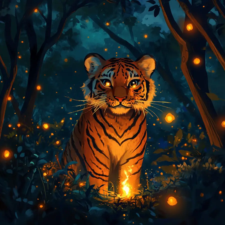 Once upon a time, deep in the glowing heart of Emberwood Jungle, lived a young tiger named Tala.